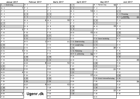 Kalender med helligdage og ugenumre